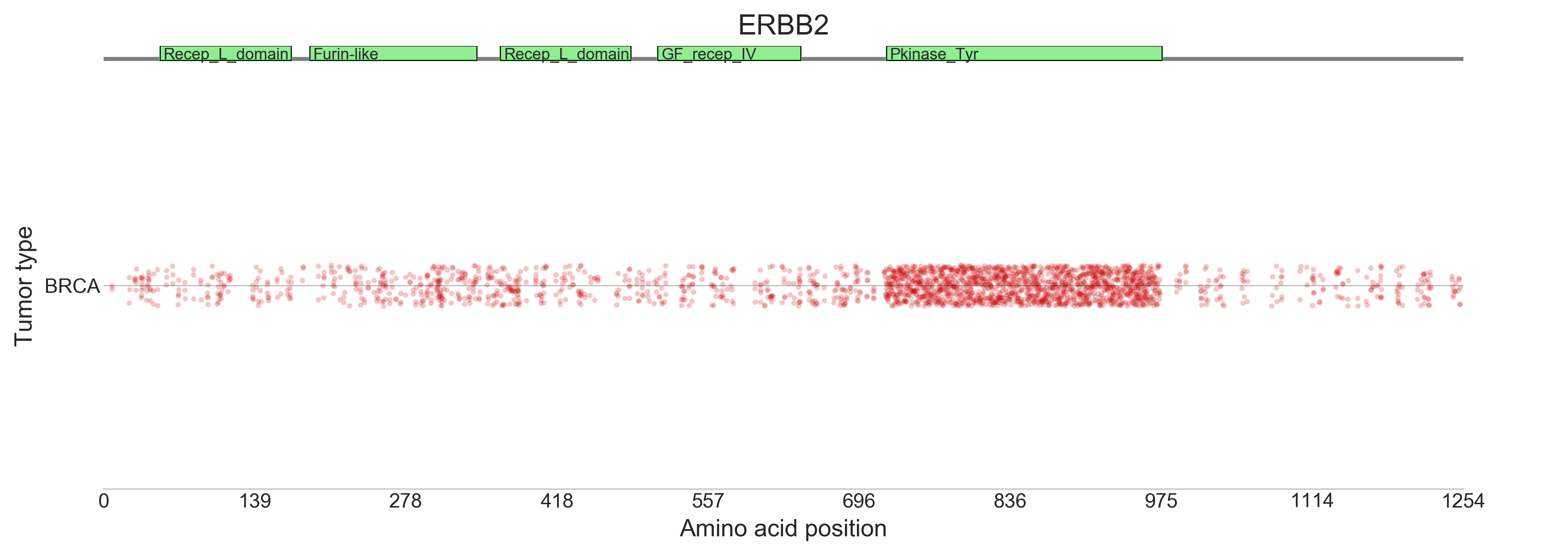 Driver mutations (displayed as red dots) are mapped to