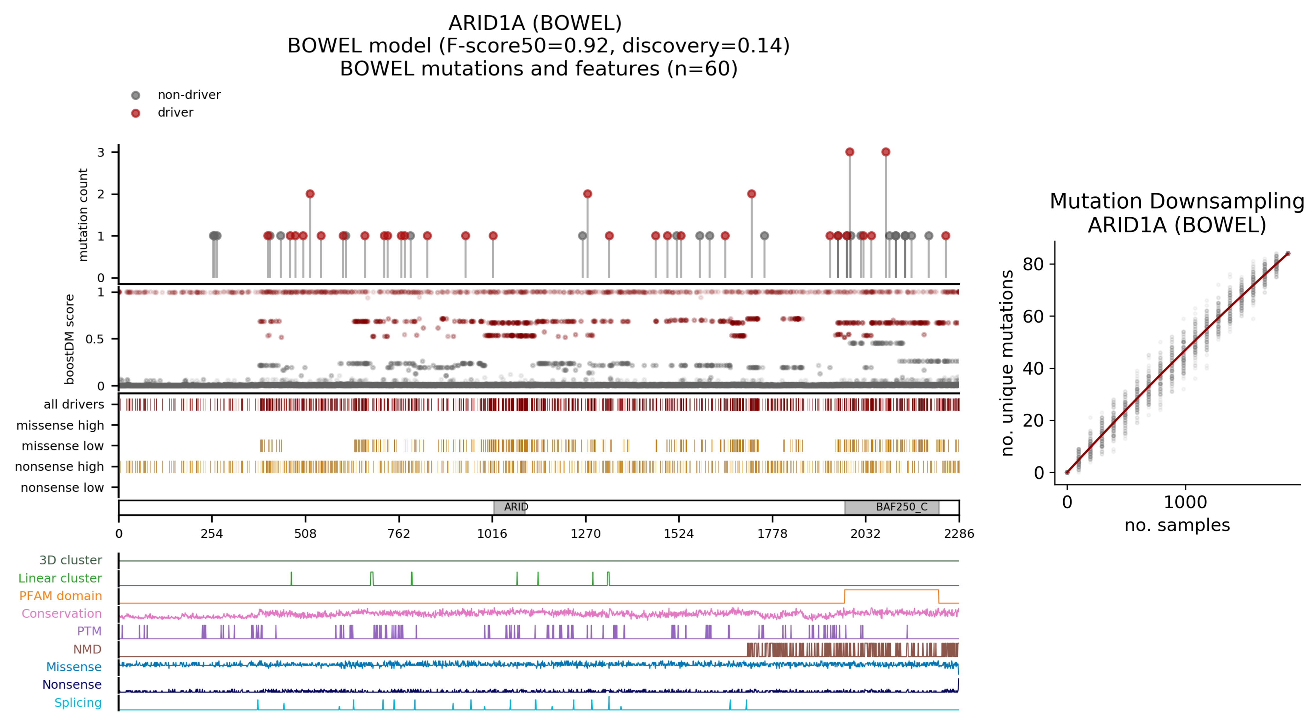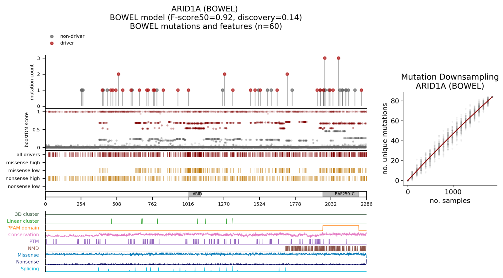 | Mutation | AA change | Consequence type | BoostDM score | IntOGen frequency |