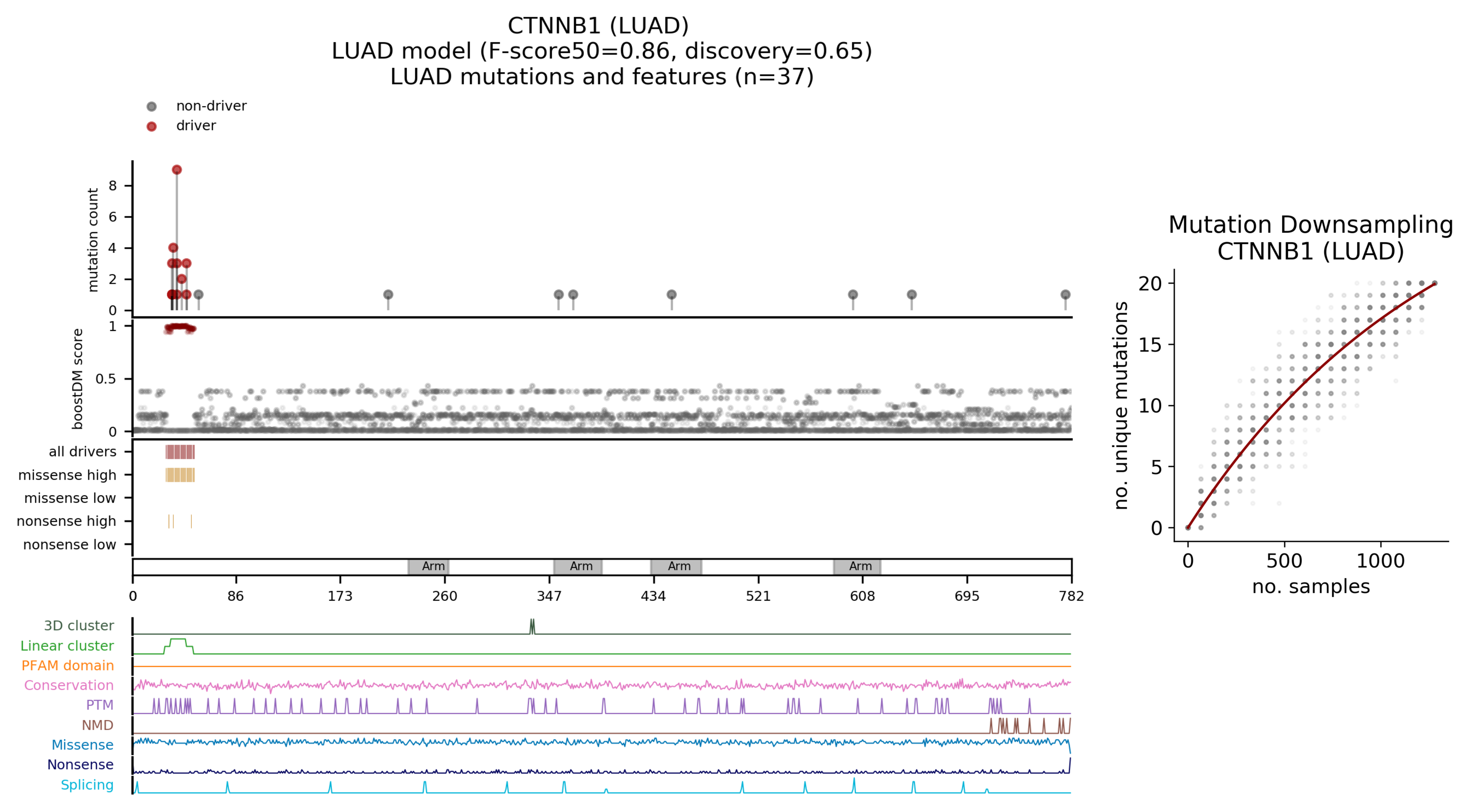 | Mutation | AA change | Consequence type | BoostDM score | IntOGen frequency |