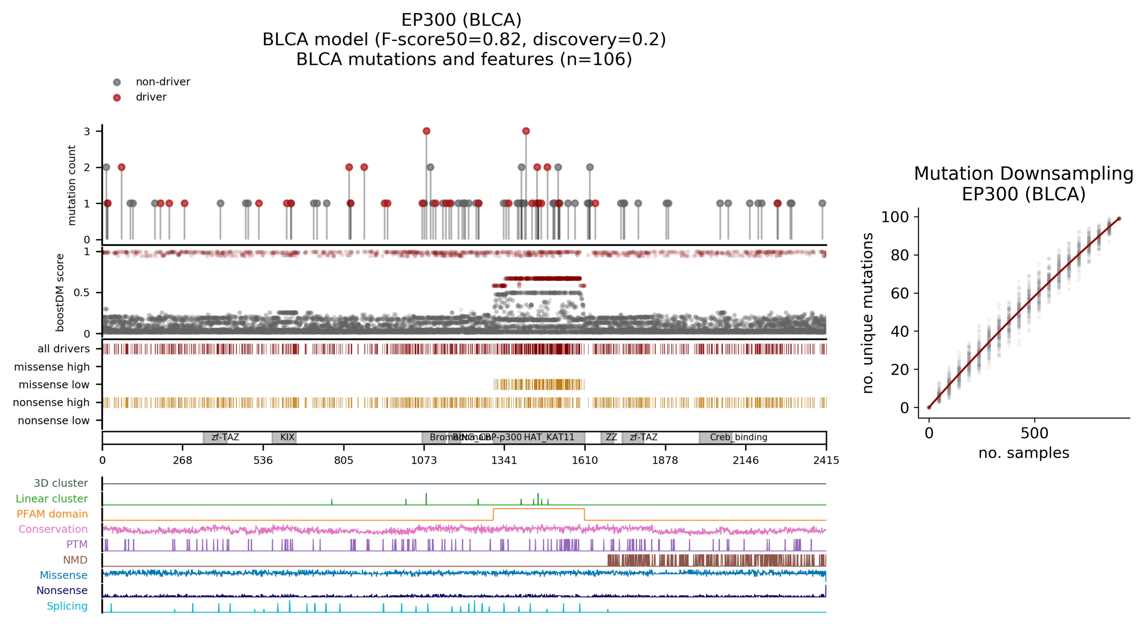 | Mutation | AA change | Consequence type | BoostDM score | IntOGen frequency |