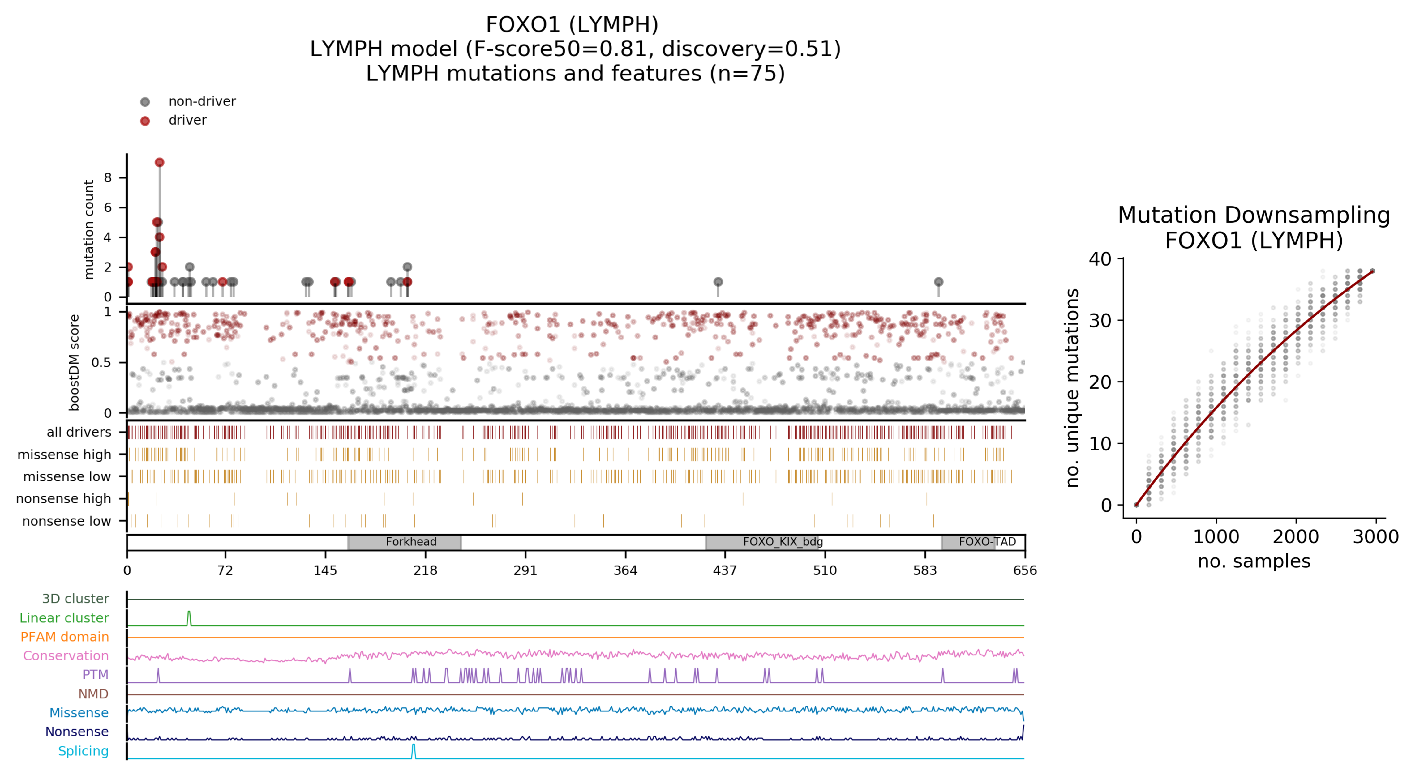 | Mutation | AA change | Consequence type | BoostDM score | IntOGen frequency |