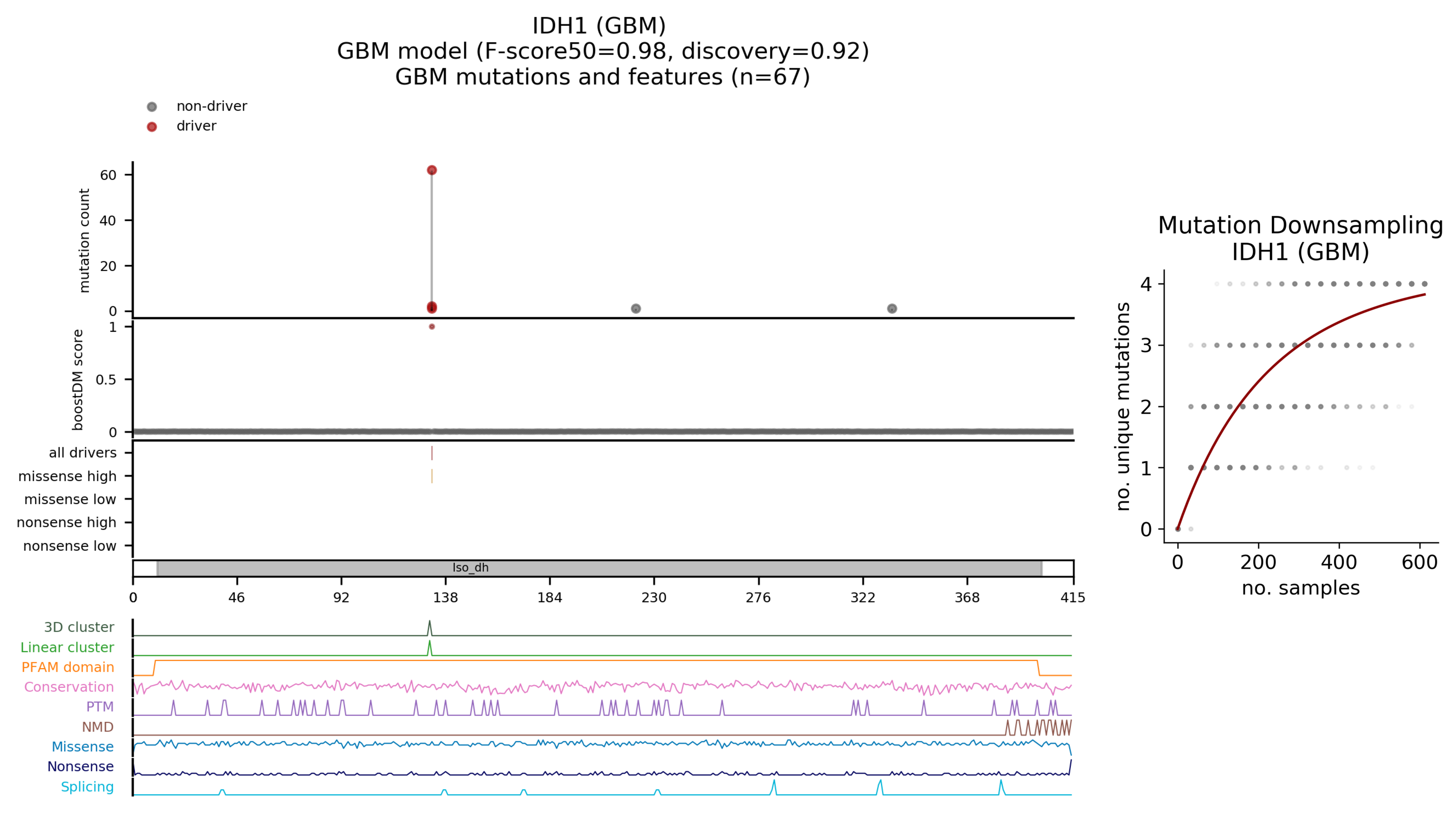 | Mutation | AA change | Consequence type | BoostDM score | IntOGen frequency |