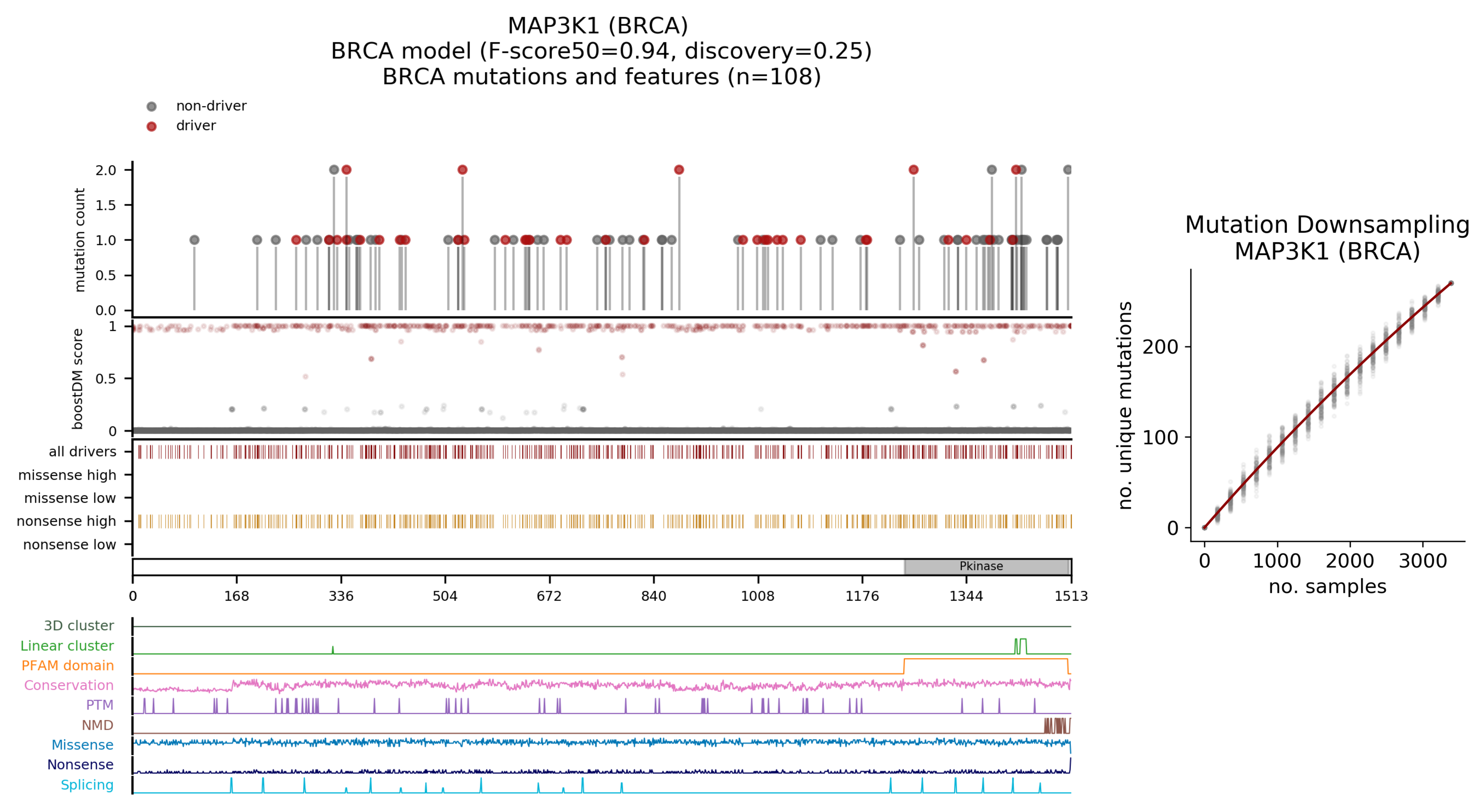 | Mutation | AA change | Consequence type | BoostDM score | IntOGen frequency |