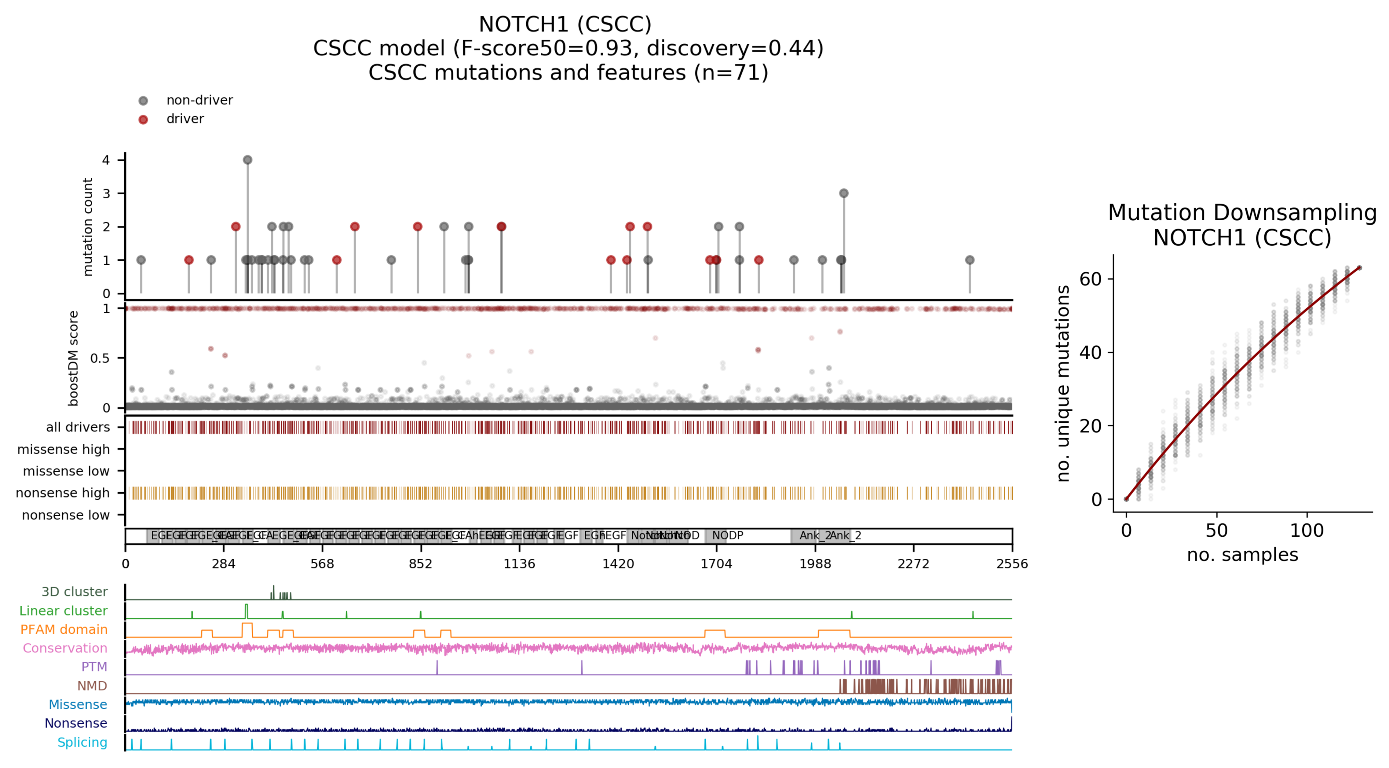 | Mutation | AA change | Consequence type | BoostDM score | IntOGen frequency |
