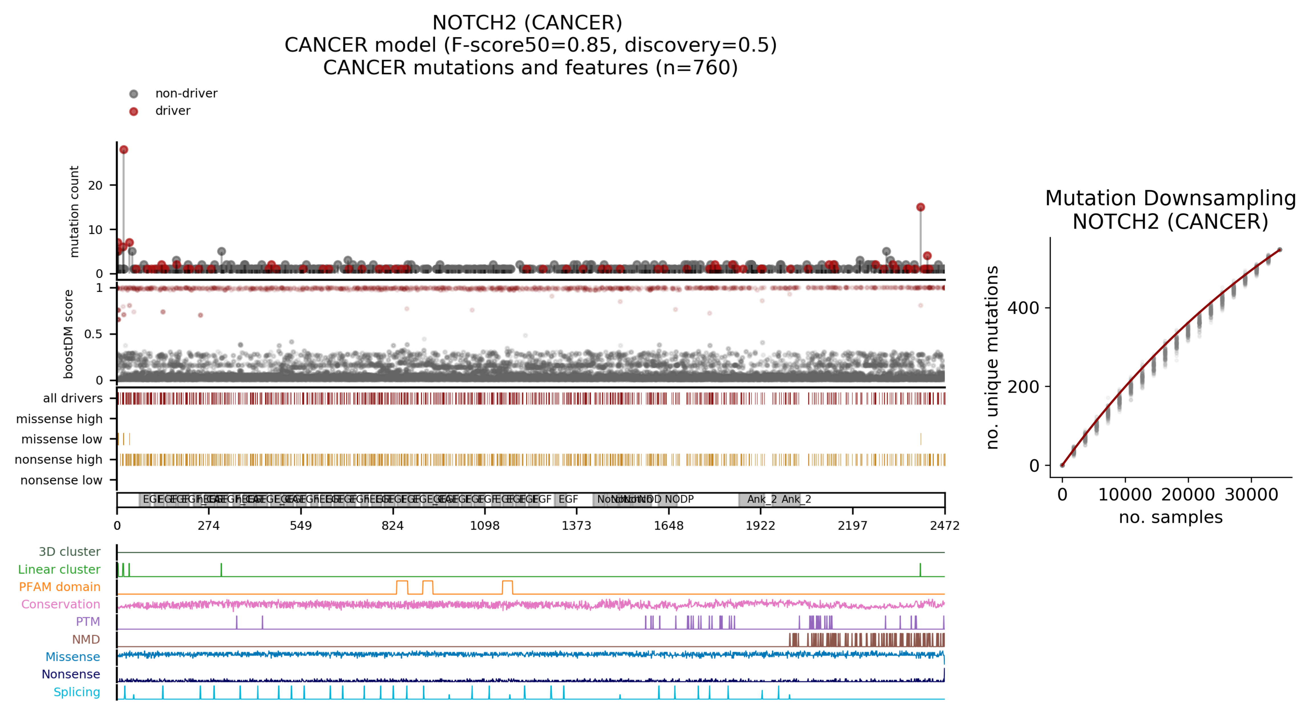 | Mutation | AA change | Consequence type | BoostDM score | IntOGen frequency |