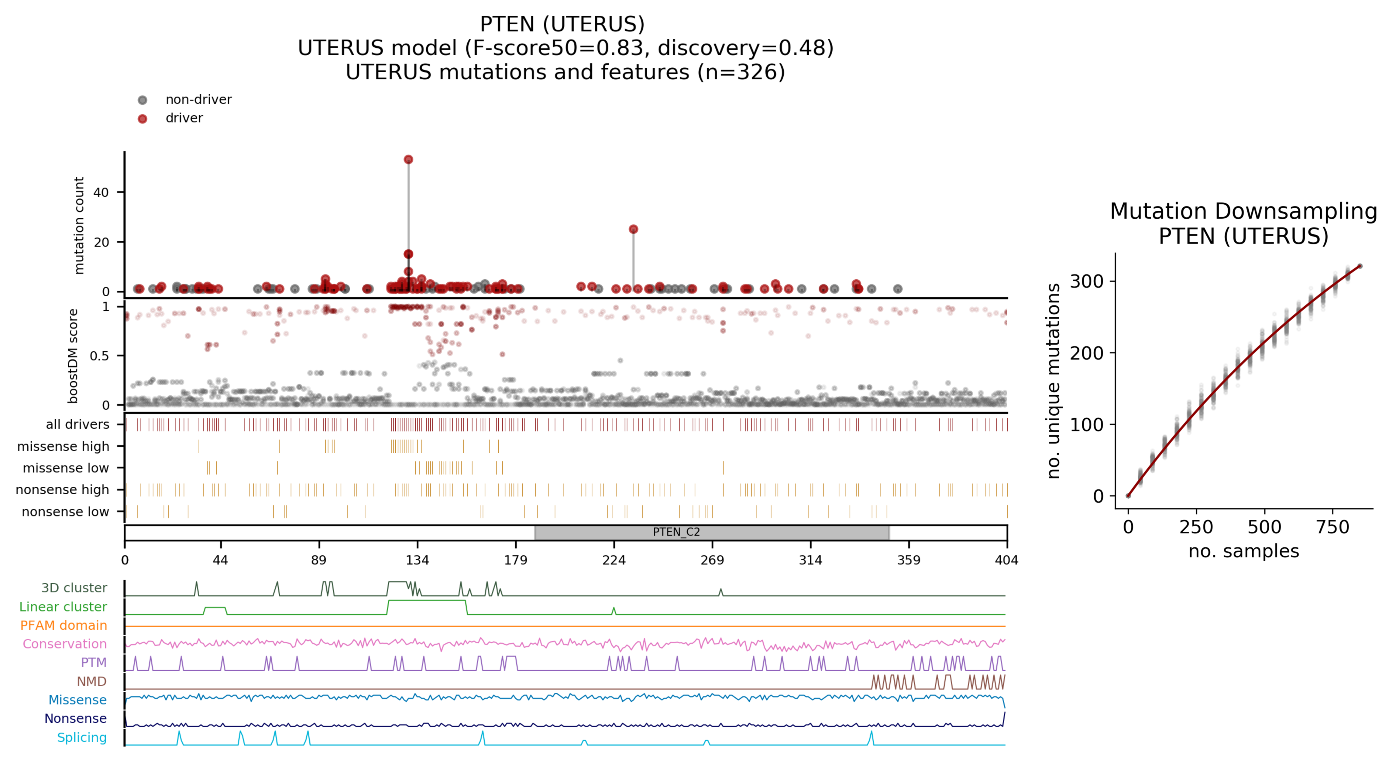 | Mutation | AA change | Consequence type | BoostDM score | IntOGen frequency |